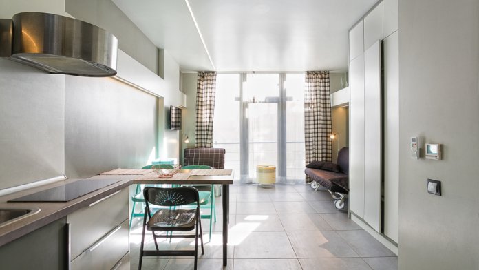 Окна выходят во двор, на тихую тенистую улицу, боковой вид на море