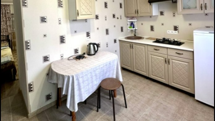 Квартира-студия, чистая и уютная, сдается одной семье или компании, оснащена: кондиционером, телевизором с плоским экраном и спутниковыми каналами, электрочайник, вся необходимая столовая и кухонная посуда.