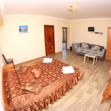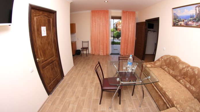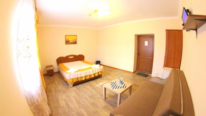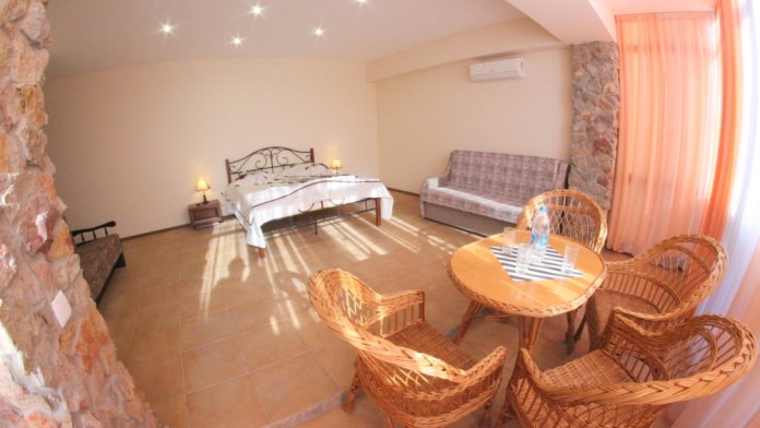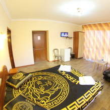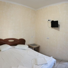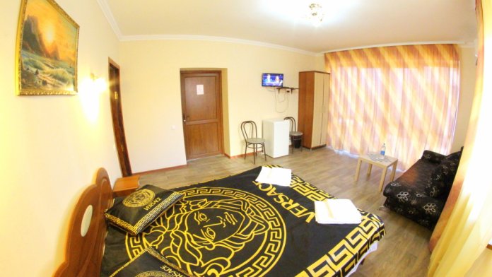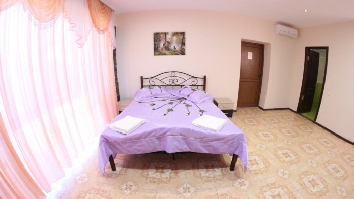 Во дворе отдельная кухня, мангальная зона и бассейн. В каждом номере свой отдельный санузел с душем, телевизором, кондиционером и холодильником. Бесплатный интернет Wi-Fi, трансфер. Пляж и центральная набережная расположены в 800 метрах от гостевого дома.