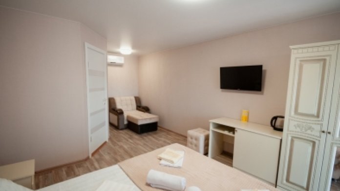 В гостевом доме полноценные, закрытые номера со всей необходимой, исправной мебелью и техникой, все номера закрываются на ключ, ловит бесплатный Wi-Fi, а к телевизорам подключено спутниковое ТВ с множеством детских и спортивных каналов.
