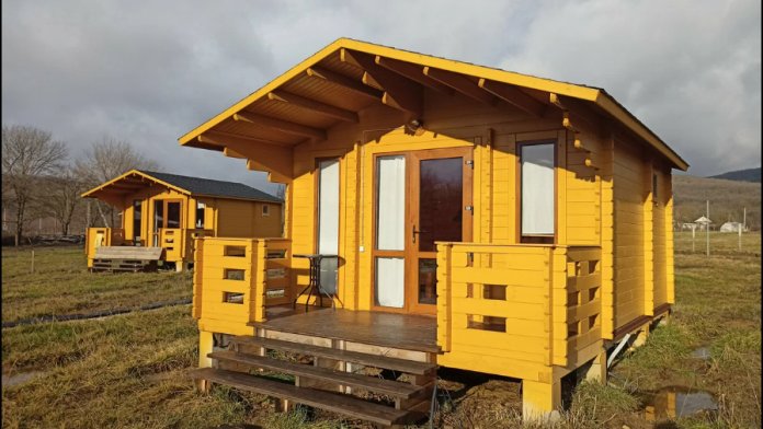 Уютные деревянные домики с душем и туалетом в номере.