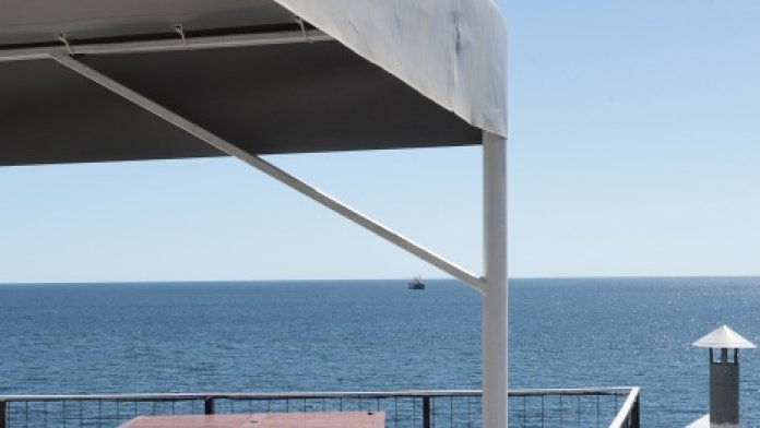 Находится над массандровским пляжем, прямо перед спуском. Закрытая территория двора. Рядом много магазинов, кафе и ресторанов.
