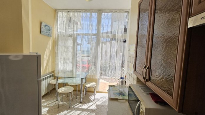 Двухкомнатные апартаменты площадью 40 кв. м. , с отдельным входом, расположенные на 1-м этаже 4-этажного здания. Рассчитаны на комфортный отдых до пяти человек. Комфортное и уютное помещение со всеми удобствами. В апартаментах расположены: кухня, санузел с душевой кабинкой, стиральная машина, кондиционер, холодильник и телевизор. Так же в бесплатное пользование предоставляется спутниковое телевидение, Wi-Fi.