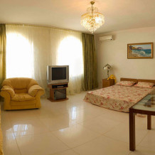 В гостевом доме предусмотрено все самое необходимое для того, чтобы семейный отдых на море оставил незабываемые впечатления. На территории есть несколько беседок для отдыхающих, обвитых ветвями сортового винограда. Отличительной особенностью гостевого дома является большая, очень красивая и уютная зеленая зона, где растут экзотические пальмы, знаменитый крымский можжевельник и множество видов плодовых деревьев, таких как персик, инжир, слива.