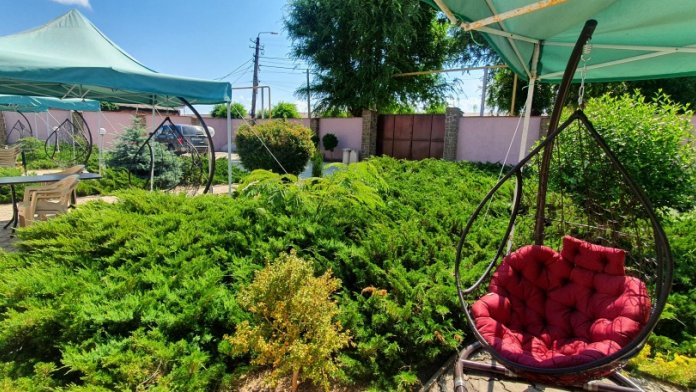 На территории располагается мини-ботанический сад, представлены следующие виды растений: в большом количестве казацкий можжевельник, туя из семейства кипарисовых - восточная, кипарис пирамидальный/итальянский, 2 вида самшита (вечнозеленый), юкки, голубые ели, пихта, кизильник, что создает удивительный микроклимат на территории морского воздуха и фитонцидов от вечнозелёных можжевельников. Оздоровление происходит уже находясь в нашем гостеприимном гостевом доме.