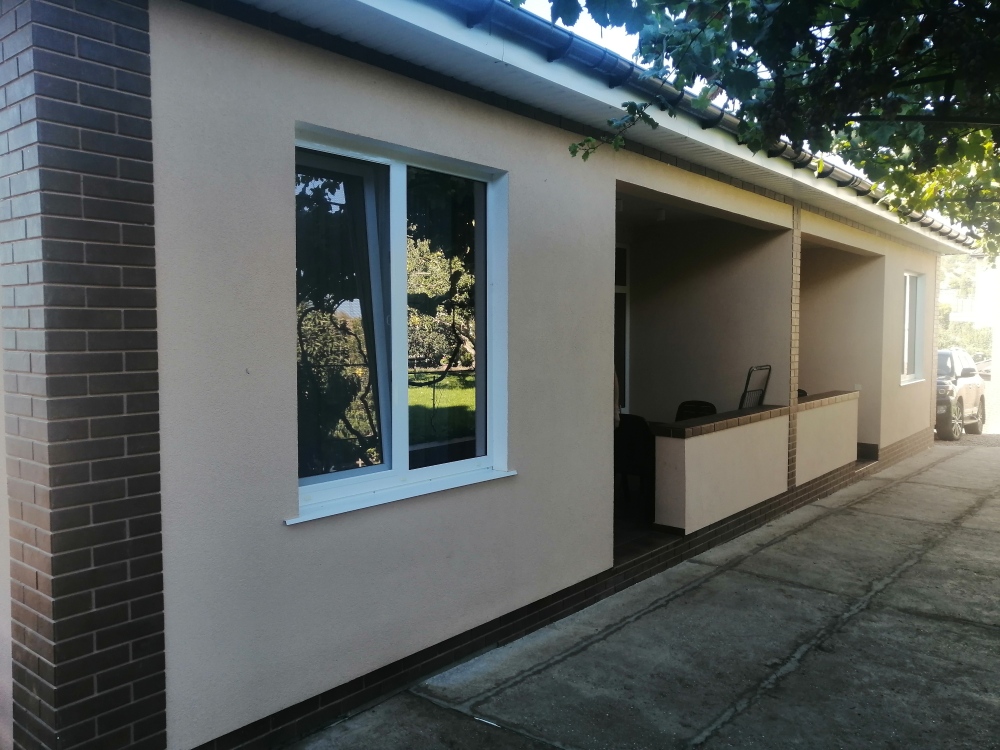 Номера на 1 этаже в отдельном домике на территории гостевого дома. Вход отдельный в каждый номер. Номер полностью укомплектован для комфортного отдыха. На собственной кухне есть всё необходимое.