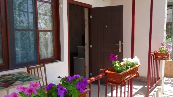 В частном доме сдается 1-комнатный апартамент с кухней, санузлом, кондиционером, беседкой, своим столиком на улице.