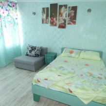 Двухэтажные апартаменты с кухней. 1 этаж диван- кровать, кухня, санузел. В апартаментах имеется все для комфортного отдыха и проживания: холодильник, газовая плита, телевизор и кондиционер. На 2 этаже двуспальная кровать, раскладное кресло.