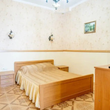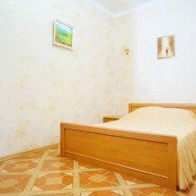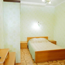 Четырехместный номер с телевизором, кухней, оснащенной плитой, холодильником, микроволновой печью. Также имеется выход на балкон.