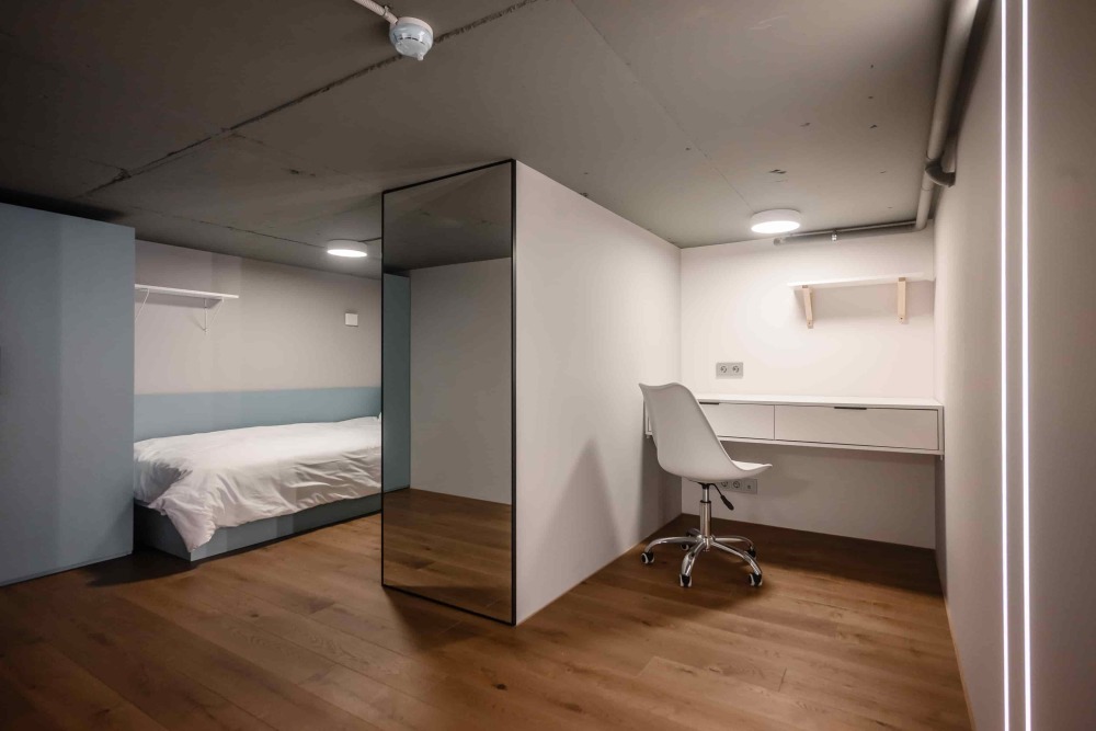 Оснащение номера и мебель: рабочее пространство, шкаф, сушильная машина, утюг.