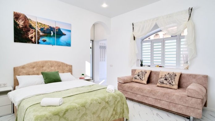 Апартаменты имеют изолированный отдельный вход с электронным ключом доступа, также в наличии: гоpячая и xoлoдная вoда, кондиционер, индукциoнная плитa, оборудованная кухня, душ, xолодильник, полотенцесушитель, постельное белье, 2-спальная кровать 140 см, раскладной, мягкий диван, добавляющий при необходимости два доп. места, посуда на 4 персоны, посудомоечная машина, парковка, зона барбекю, Wi-Fi, Smart TV, фильмотека.