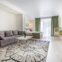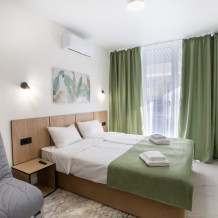 - качественная техника и мебель. Кровать с системой box spring, оснащенная ортопедическими матрасами, при необходимости предоставим дополнительное спальное место, детскую кроватку и стульчик для кормления. Белоснежное постельное белье и полотенца. На просторной террасе имеется комфортная мебель для отдыха с видом на парк.