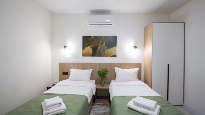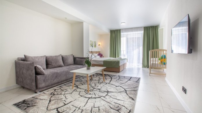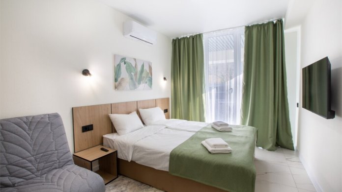 - размещение в номерах с дизайнерской отделкой, новой мебелью и техникой, в каждом номере полностью оборудованная кухня;