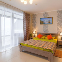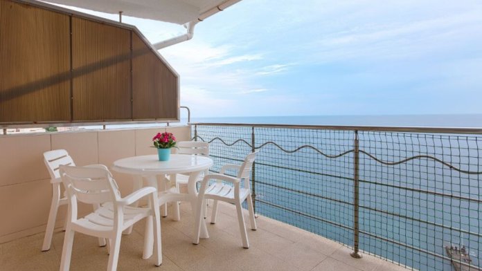 Апартаменты с видом на море находятся на 3-м этаже. Wi-Fi, балкон с видом на море и шезлонгами, телевизор, кондиционер, холодильник, микроволновая печь, чайник, электроплита, посуда, стиральная машина, утюг и гладильная доска, фен. Предоставляем полотенца, постельное белье и средства гигиены. Комната 1: кухня-гостиная (спальные места: раскладной 2-местный диван, односпальная кровать). Комната 2: спальня с двуспальной кроватью. Для детей предоставляем детскую кроватку, стул для кормления и горшок.