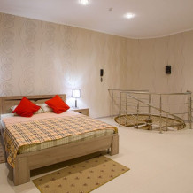 Апартаменты занимают два последних этажа (6 и 7 этажи) Wi-Fi, 2 балкона с видом на море и удобными шезлонгами, 2 телевизора 55 дюймов, кондиционер, холодильник, микроволновая печь, чайник, электроплита, посуда, стиральная машина, утюг и гладильная доска, фен. На первом этаже: оснащенная всей необходимой техникой кухня-гостиная (спальные места: большой двуспальный раскладной диван, 2 односпальных раскладных кресла) и санузел, балкон. На втором этаже: спальня с двуспальной кроватью, санузел, терраса.