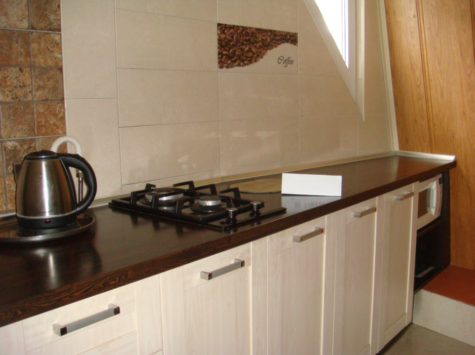 Кухня со всей бытовой техникой и посудой