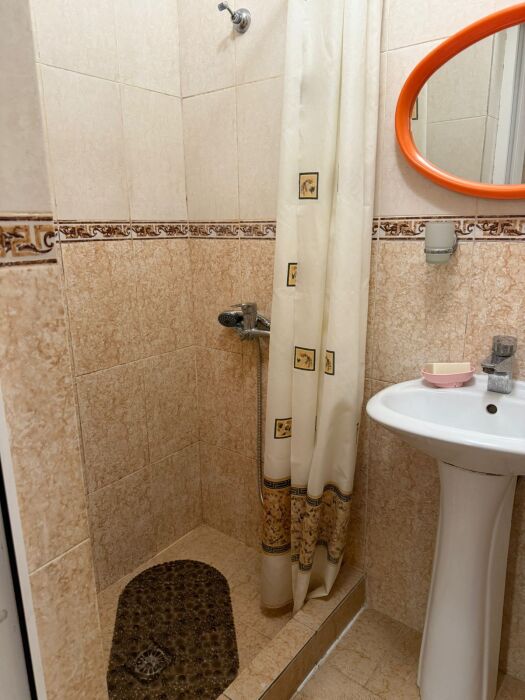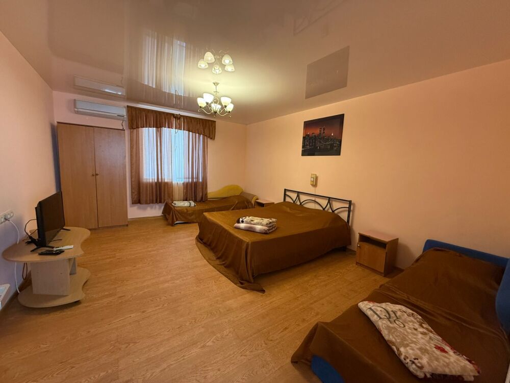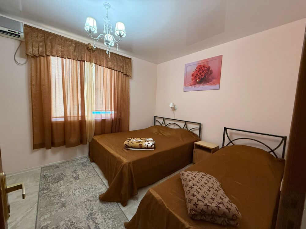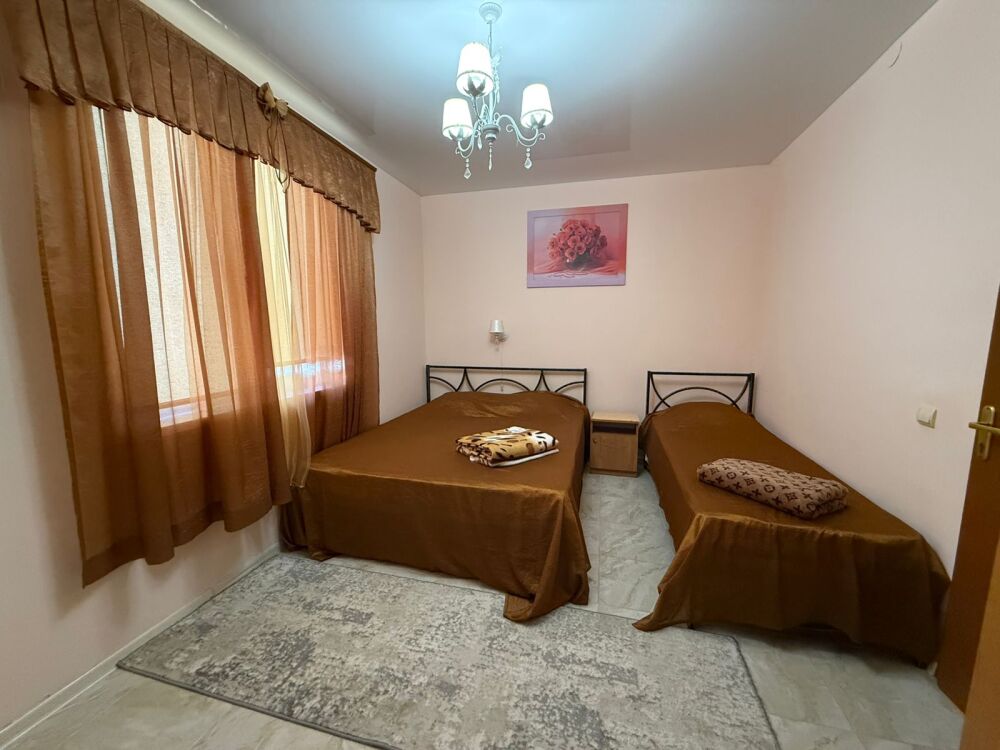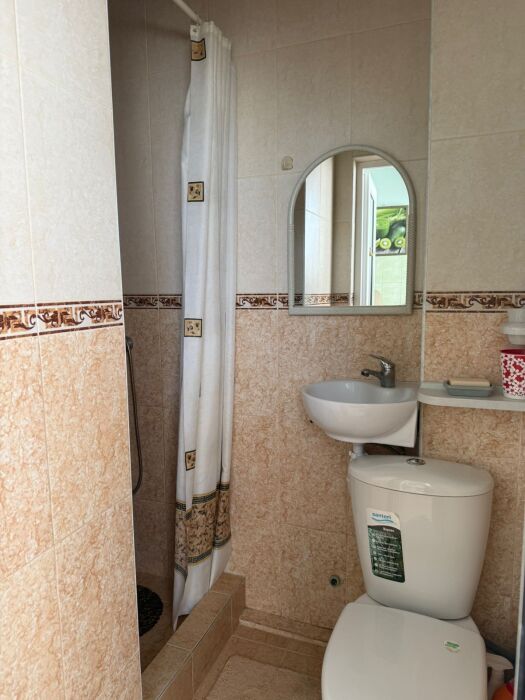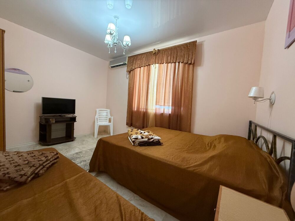 Сдаётся дом в период с 1 июня по 1 октября. На первом этаже комната на трёх человек (одна кровать двуспальная, одна односпальная, шкаф, прикроватная тумбочка, телевизор - спутниковое тв.,кондиционер), также на первом этаже санузел, душевая (бойлер), кухня с мебелью, холодильник, газовая плита, посуда, утюг.