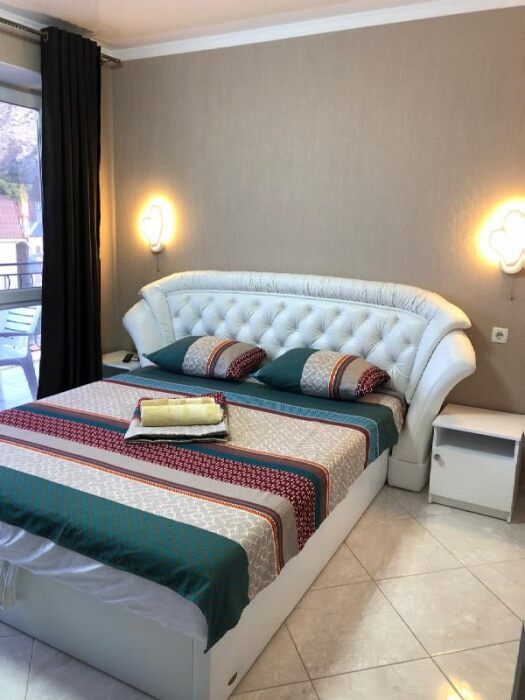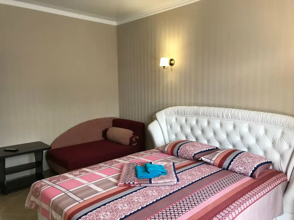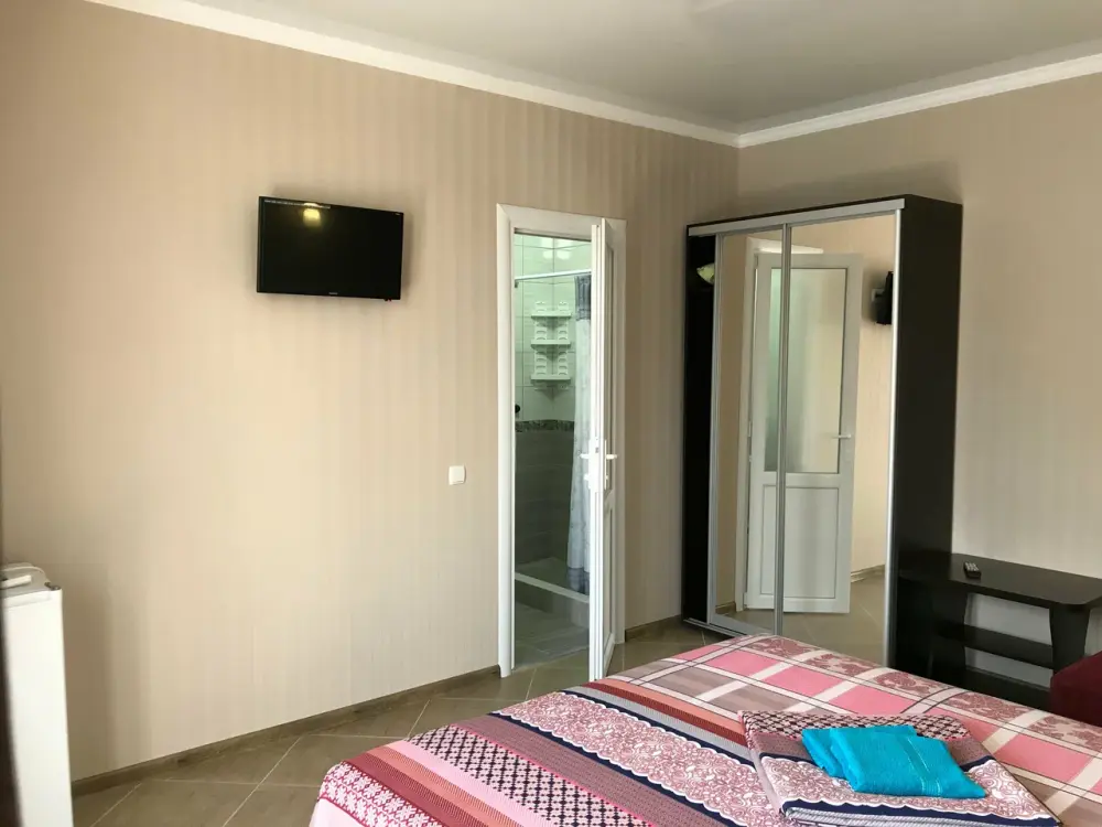 В номере: двуспальная кровать, раскладной диванчик, душ и санузел (горячая и холодная вода круглосуточно), телевизор, холодильник, кондиционер, электрический чайник, посуда, wi-fi. Отдыхающим предоставляем полотенца и постельное.