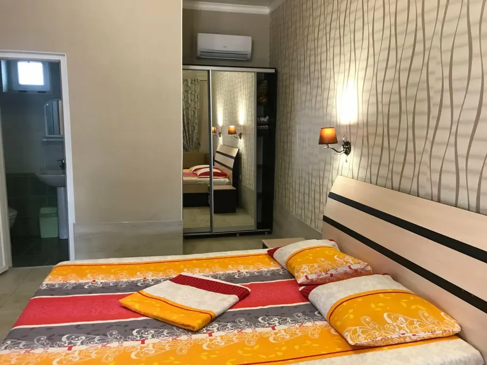 В апартаментах: 2-спальная кровать, душ и санузел (горячая и холодная вода круглосуточно), телевизор, холодильник, кондиционер, wi-fi. Отдыхающим предоставляем полотенца и постельное белье.