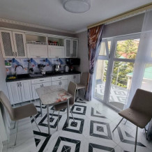 Номер с двумя раздельными комнатами и балконом (вид на море и горы), оборудована кухня, большой санузел, стиральная машинка и большая лоджия мебелью и видом на море.
