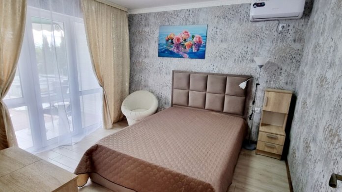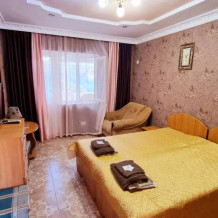 Двухкомнатный номер полулюкс с кухней и со своим двориком у номера. Такие апартаменты позволяют с комфортом разместить 4 взрослых гостей пансионата и 2 детей (до 8 лет), предоставив максимальное количество удобств для полноценного морского отдыха.