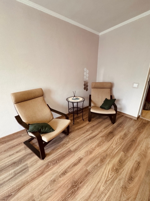 Квартира после капитального ремонта 2024 года. Обновленный интерьер, современная мебель: спальня с двуспальной кроватью, мягкая часть с двуспальным диваном, односпальная кровать в детской.