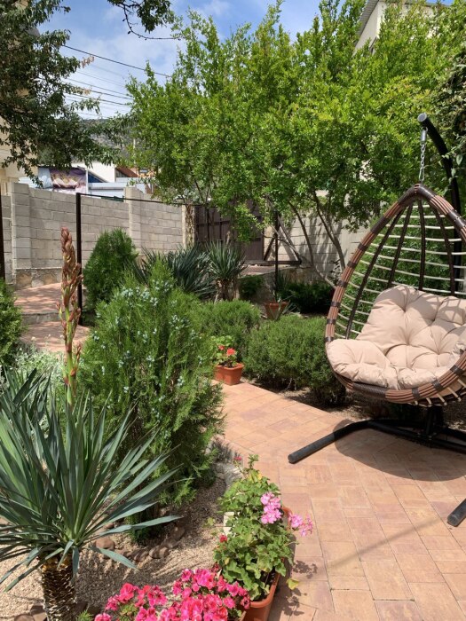 Нашим гостям мы предлагаем отдельно стоящий дом, со своим большим зеленым двором. На территории двора есть парковка для 2-х машин, мангальная зона, беседка для отдыха, садовая качель, шезлонги, кокон.