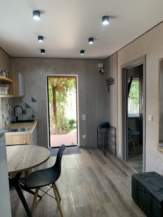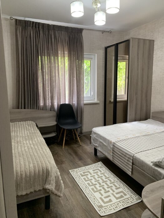 В доме две отдельные комнаты и просторная кухня, так же есть два санузла, один расположен в доме, второй во дворе. В каждой комнате стоит 2-спальная кровать и одна 1-спальная кровать, шкаф купе, кондиционер, тв.