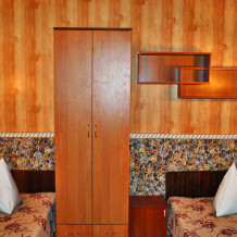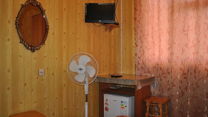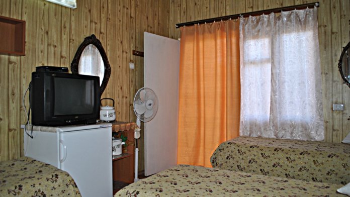 Комната находится на 2-м этаже главного корпуса. В комнате есть холодильник, вентилятор, телевизор со спутниковыми каналами, шкаф, три односпальных кровати. В коридоре находится мощный кондиционер.