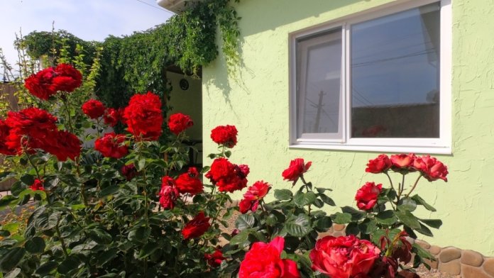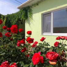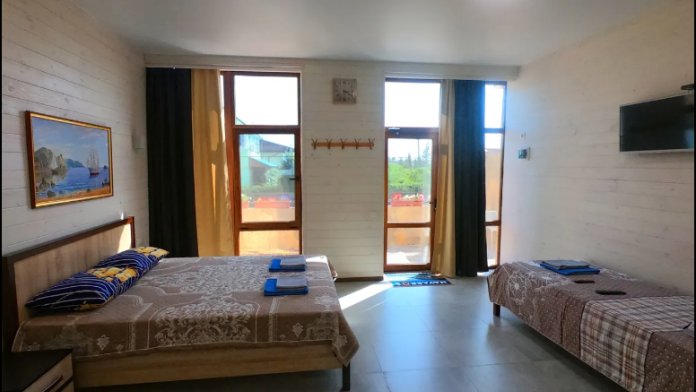 Комфортабельные 2,3,4-местные номера, отдельные домики люкс со своим двором, в 6 км от города, душ, туалет, телевизор, кондиционер, на улице беседки, мангал, зона отдыха, баня на дровах, бассейн, цветник, летняя кухня, Wi-Fi, автостоянка, до моря 10-15 минут прогулочным шагом, море в прямой видимости.