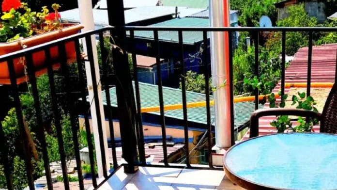 Свой двор с закрывающейся на ключ металлической калиткой, мангал, терраса с открывающимся видом на море и горы, где можно приятно провести время. Во дворе произрастают пальмы.