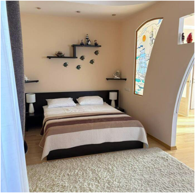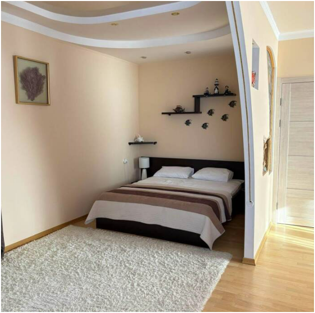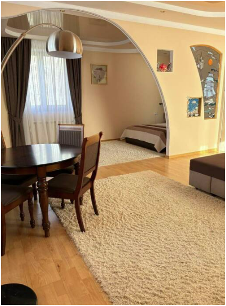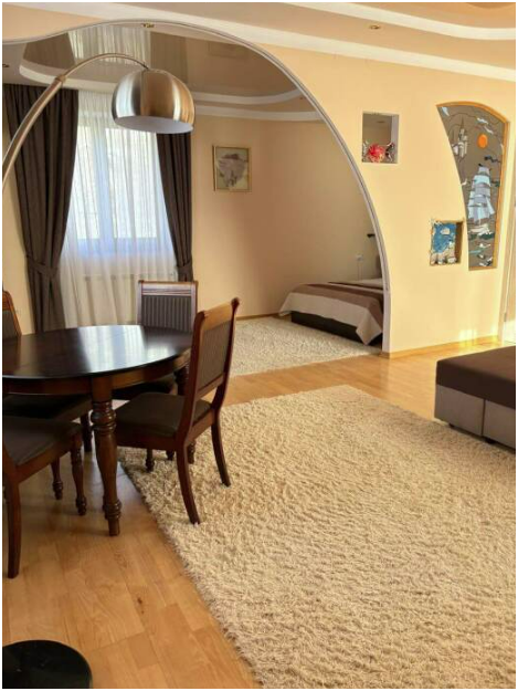 просторные апартаменты, также есть прикроватные тумбочки,платяной шкаф, стол, стулья,СВЧ,индукционная печь,вытяжка, обеденный гарнитур.
