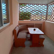 Предлагается небольшие, уютные домики на благоустроенной, зелёной территории. В домиках есть всё для уютного проживания. На территории есть стоянка для автомобиля, мангал, зона отдыха, детская площадка. Расстояние до моря 250 метров.