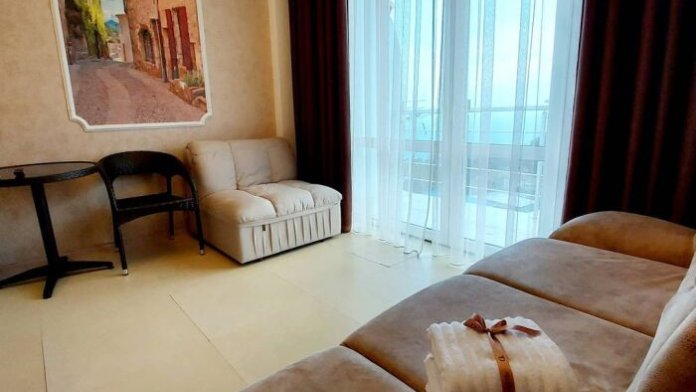 Студия расположен на 6 этаже с шикарным видом на море и открытым балконом. Вся необходимая мебель и техника, жк тв, кондиционер, стиральная машина, wi-fi, утюг, фен, холодильник, а также полностью укомплектованная кухня посудой и техникой.