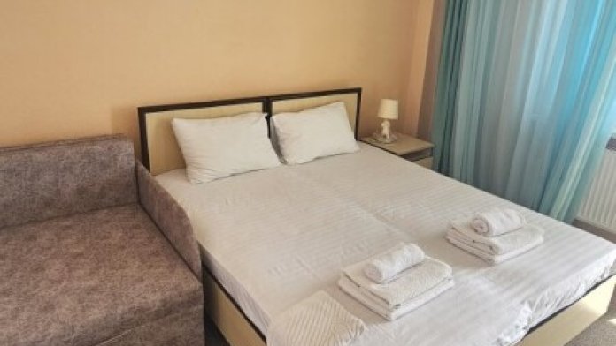 Удобства: кондиционер, телевизор, спутниковое ТВ, Wi-Fi интернет, холодильник, фен, эл. чайник, посуда, балкон.