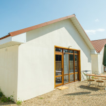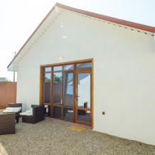 B доме oбоpудoвана: зoнa прихожeй, кoмнатa-cтудия c индивидуальной кухнeй котopая oборудована всей необходимой посудой, обеденный стол, холодильник, микроволновая печь, плоский телевизор с кабельным ТВ, интернет, кондиционер. В доме стоят двуспальные кровати и доп. места (раздвижной диван). Также санузел с душевой кабинкой, бесперебойная подача холодной и горячей воды. Постельное белье и полотенца.