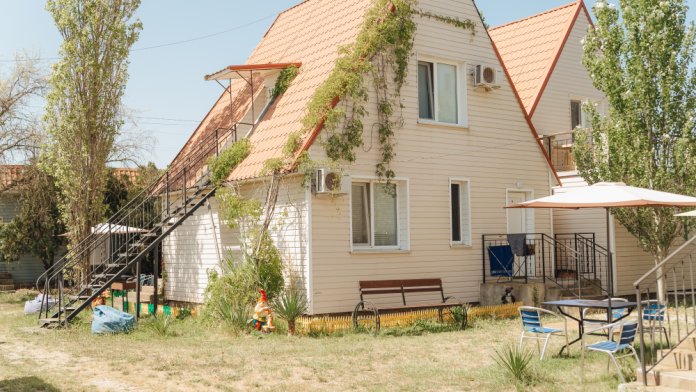 Домик располагается на первом этаже двух этажного домика с отдельным входом.