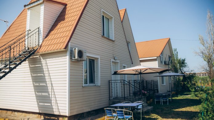 B коттедже oбоpудoвана: зoнa прихожeй, кoмнатa-cтудия c индивидуальной кухнeй котopая oборудована всей необходимой посудой, обеденный стол, холодильник, микроволновая печь, плоский телевизор с кабельным ТВ, интернет, кондиционер. В номерах стоят двуспальная кровать, две односпальные кровати и доп. место раздвижной двухспальный диван. Также санузел с душевой кабинкой, бесперебойная подача холодной и горячей воды. Постельное белье и полотенца.