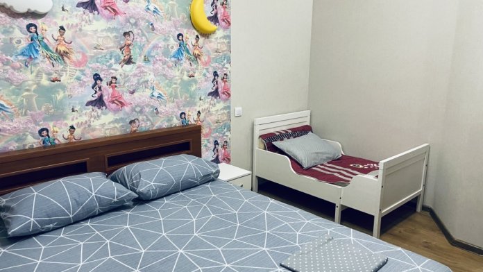 В квартире имеется всё необходимое для проживания: 3 двуспальных кровати, 2 диван-кровати, детская кроватка, интернет, телевизор, кондиционер, стиральная машина и оборудованная кухня. В одной из комнат есть камин.