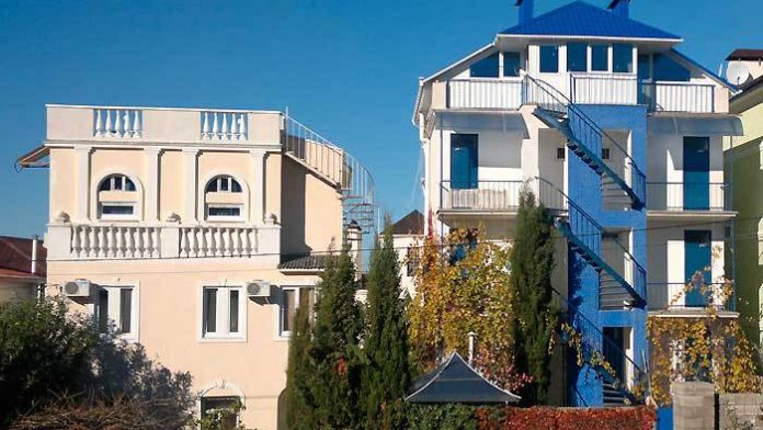 Привлекательная архитектура дома соответствует интерьеру внутренних помещений, каждое из которых обращено к морю и автономно: спальня, мини-кухня, кондиционеры, ТВ, санузел, умывальник, душ, необходимая мебель, балконы. Отдыхающие при желании могут принимать ультрафиолетовые ванны в собственном солярии: крыша дома - обзорная площадка-солярий с восхитительным видом на море, шезлонгами, ночной подсветкой.