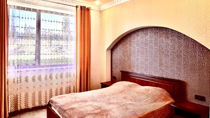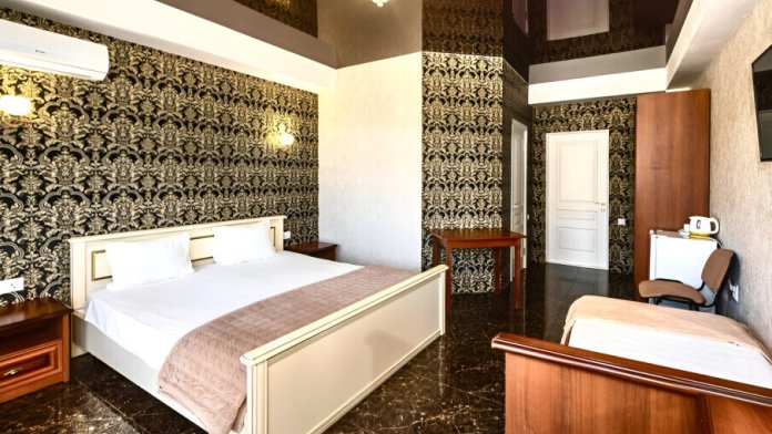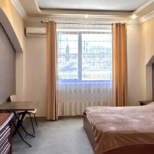 В номере: телевизор с плоским экраном, шкаф, холодильник, удобная двуспальная кровать, односпальная кровать, кондиционер, Wi-Fi, полотенца, тапочки.