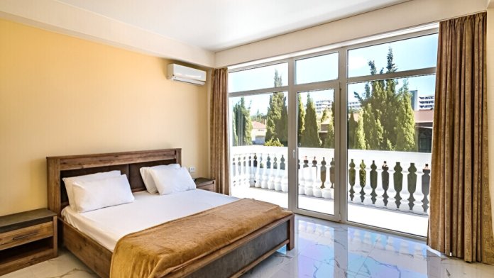 В номере: телевизор с плоским экраном, шкаф, холодильник, две удобные двуспальные кровати в раздельных изолированных комнатах, кондиционер, Wi-Fi, полотенца, тапочки.