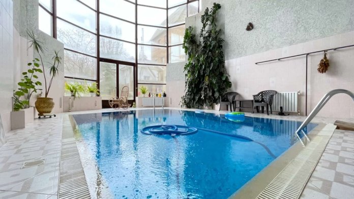 - Крытый бассейн с роскошными панорамными окнами, душевыми, зоной для отдыха;