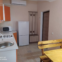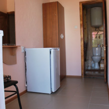 3х местный номер со своей кухней. В номере свой санузел(туалет,душ,умывальник). Своя кухня, оборудованная всем необходимым :холодильник,микроволновая печь, газовая плита,стол для приема пищи.