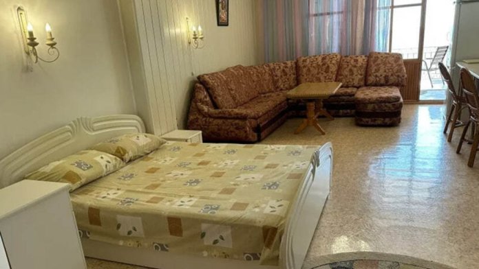 Двухкомнатный двухместный номер, площадью 33 кв.м. Номер находится на 2-м этаже. В номере есть: кондиционер, холодильник, телевизор. На балконе расположена кухня, с необходимой посудой для приёма и приготовления пищи. Также в номере есть с/у (душ, туалет), горячая и холодная воды круглосуточно. Кровать (спальное место 160 см), раскладной диван. С балкона номера открывается вид на город. Номер предназначен для 2 человек, с возможностью размещения 1 человека на доп. месте