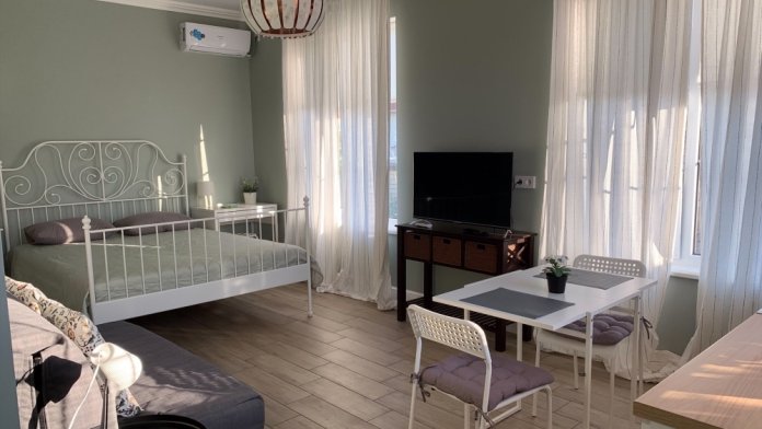 Апартаменты «Вилла Грин» построены в 2020 году. Расположены в 1 км от набережной поселка Коктебель, и в то же время в старой и тихой части поселка у подножья 3-х гор. Дорога до моря займет 10-12 минут спокойным шагом. Ближайший к нам пляж открыт. Напротив расположен магазин, до автостанции всего 500 м. Расстояние до аэропорта Симферополь составляет 120 км, и по запросу мы можем организовать для Вас трансфер.