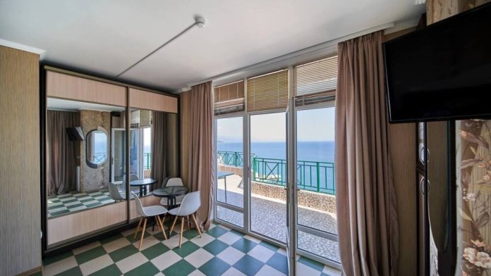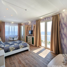 Из номера есть выход на большую общую с соседнем номером террасу с панорамным видом на море.