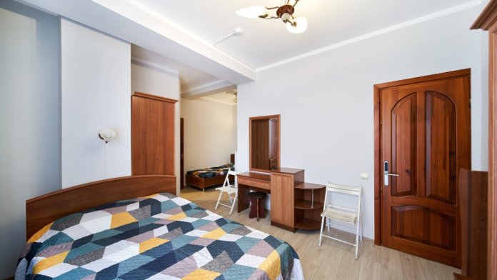 Также помимо кровати в некоторых номерах есть полуторный раскладной диван.