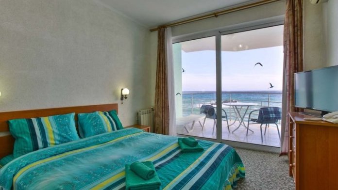 Апартаменты с видом на море, с балконом, 2 этаж. Кухня оборудована плитой, духовкой, посудомоечной машиной, микроволновой печью, электрочайником. Большой набор посуды. Обеденная зона, диван раскладывается.