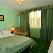 Номера выходят на северную сторону. Для комфортного отдыха вдвоем номер располагает всем необходимым. Это кондиционер для создания прохлады, полный пакет телеканалов, Wi-Fi. Номер без балкона.